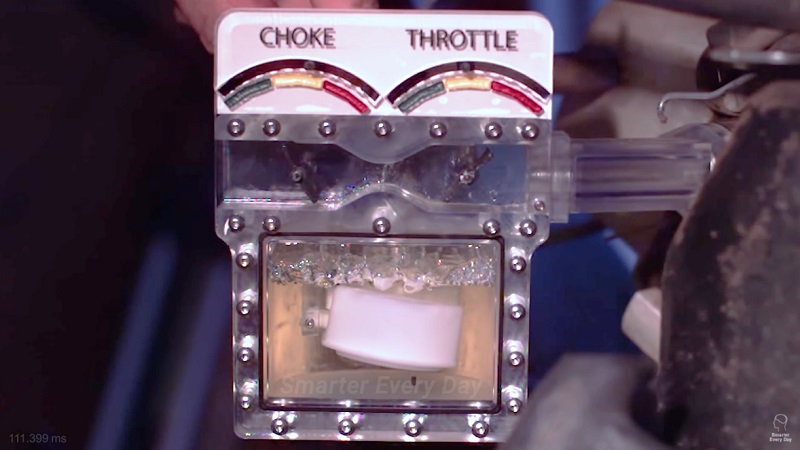 Destin from the “Smarter Every Day” channel built a clear carburetor, and recorded its operation in slow motion at 28,546 fps.