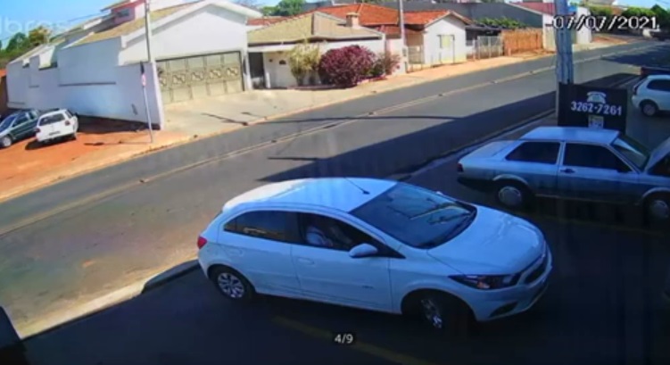 After checking that the road is free, the customer of a garage and a neighbor leave their parking lot at the same time. The incident happened in Sao Paulo, Brazil.