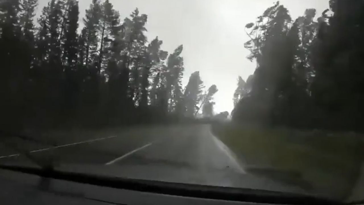On Monday, August 2, 2021 near Polotsk, Belarus, Tourists were circulating during a storm when trees began to fall on the road. The driver stopped immediately to park on the side, and then dozens of trees began to fall one after the other in a matter of seconds. Fortunately, No one was injured.