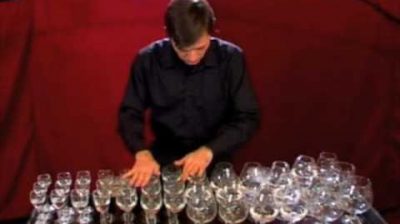 In Venice, Italy, a talented street artist playing the theme music of Harry Potter movie in glass cups.