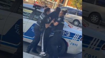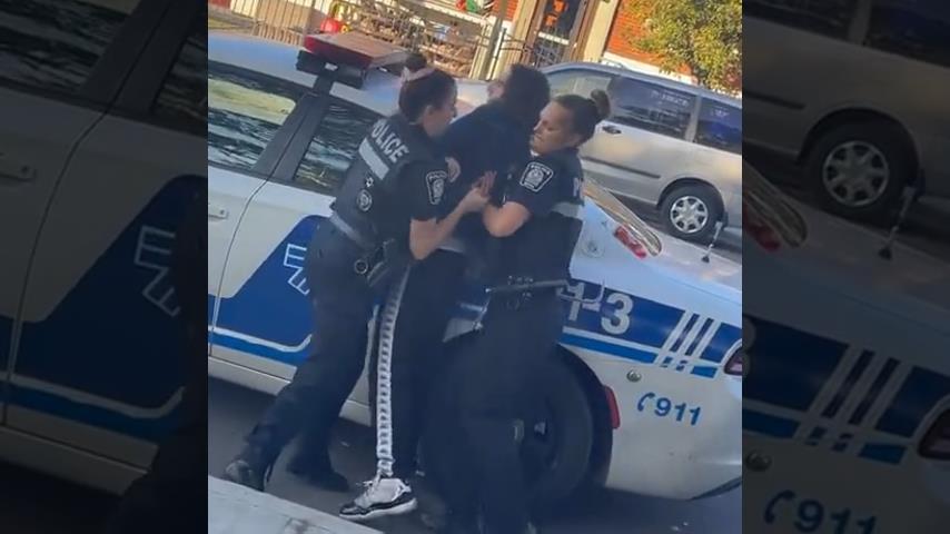 Two female police officers in Montreal, Canada attempt to arrest a suspect, but he escapes the moment they try to handcuff him.