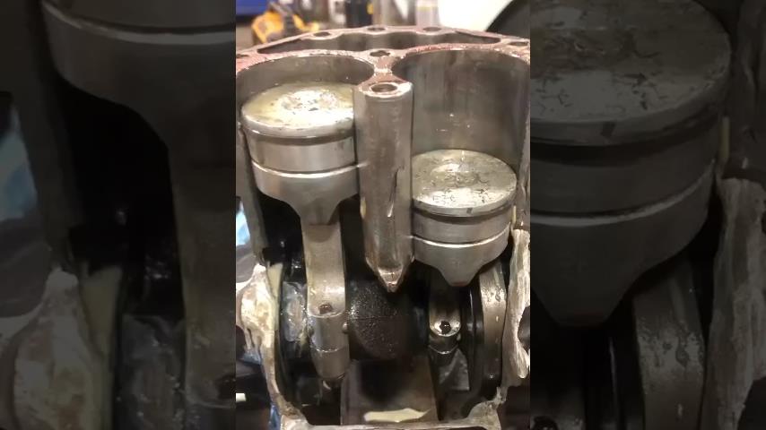 Representation of the movement of two pistons, when operating an internal combustion engine.