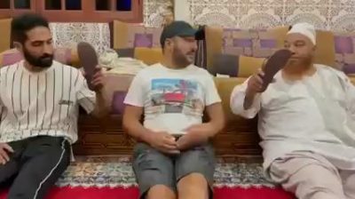 A funny version of the speed game with flip flops, where the aim is for the middle player to be able to hit the other two without them having time to hit his hand.