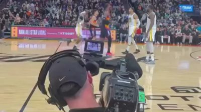 The excellent handling of the camera by a professional during a basketball game for the NBA.