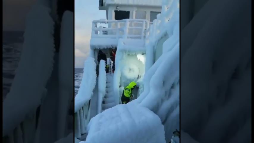 After the passage of a strong storm, a ship in Russia was completely covered by a thick layer of ice.