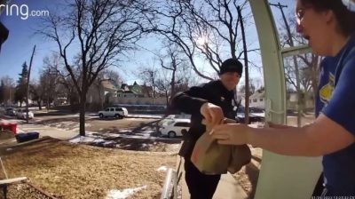 On Tuesday, January 25, 2022 in Sioux Falls, South Dakota, a policeman delivered food to a house, after he had arrested the delivery man handling the order.