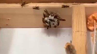 In a building, someone throws polyurethane foam at wasp nests to eradicate them.