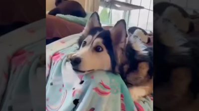 A dog gets excited about a TV commercial.