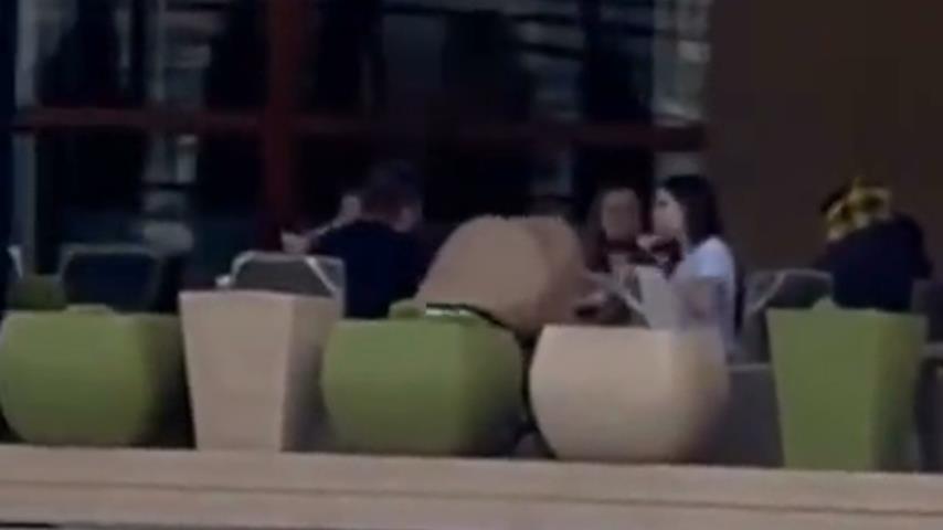 The tenderness of a mother trying to put her baby to sleep on the terrace of a restaurant...