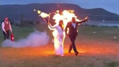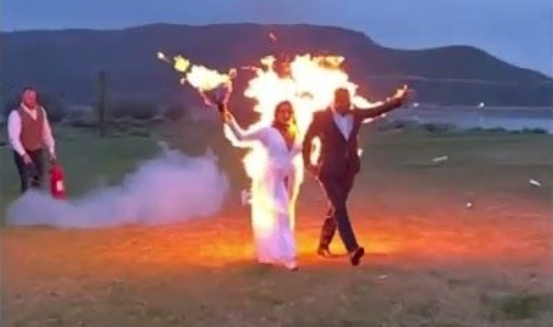 Saturday, May 7, 2022 in Utah, Gabe Jessop and Ambyr Mishelle, a pair of stuntmen, they celebrated their wedding wrapped in flames, walking like this for many seconds while greeting the guests before extinguishing them with fire extinguishers. On his Instagram account, the husband said: 'Let the fire burn in our hearts for the rest of our lives'.