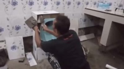 Water tanks are loaded directly on the back of a truck with an improvised construction.