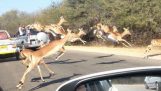 A brave honey badger faces off against three leopards that attack him, National Park South Africa Kruger.