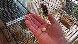 A blue tit is preparing her nest, lays and spins her eggs in a timelapse video.