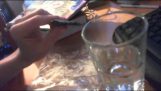 The great misfortune of a girl, attempting to throw sugar in a jug with juice.