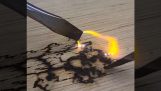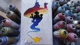 A beautiful painting of a night landscape using spray and other unconventional methods.
