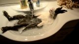 A clever prank, combining an unmanned boat with a plastic crocodile head.