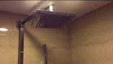 An upside down shower in a hotel