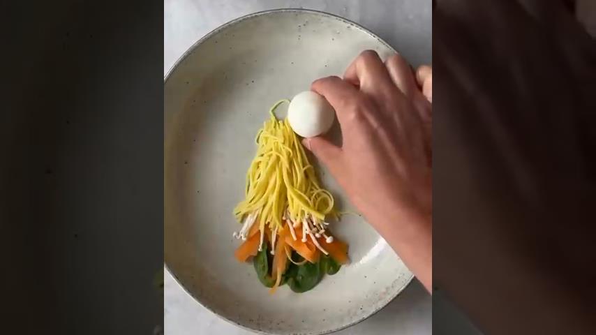 M<ια καλλιτεχνική γαρνιτούρα σε ένα πιάτο κοτόσουπας.