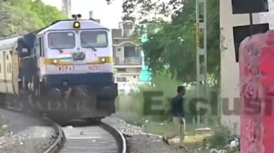 A man in India stands on train tracks gesturing to the driver and forcing him to stop the train. But he did not foresee the punishment that the driver reserved for him.