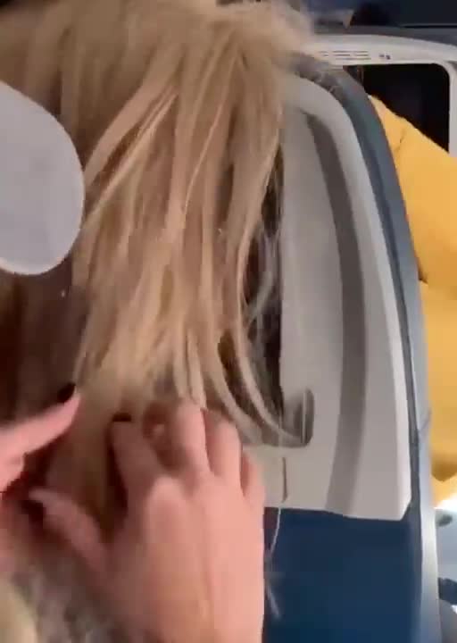 A woman works in a call center from her home, but she faces some difficulties with her dog while talking...
