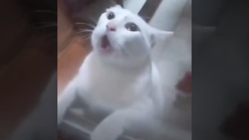 A desperate cat wants to get out of a warehouse urgently, where a mouse roams.