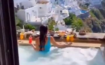 In a city bar Niksic in Montenegro, a large glass aquarium suddenly breaks.