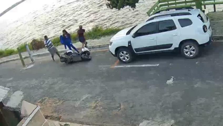 A kind gentleman comes to the aid of 2 women who fell off a scooter. His attempt to lift the scooter will prove disastrous.
