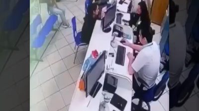 After briefly rising from his desk, an employee sees his chair suddenly launch into the air.