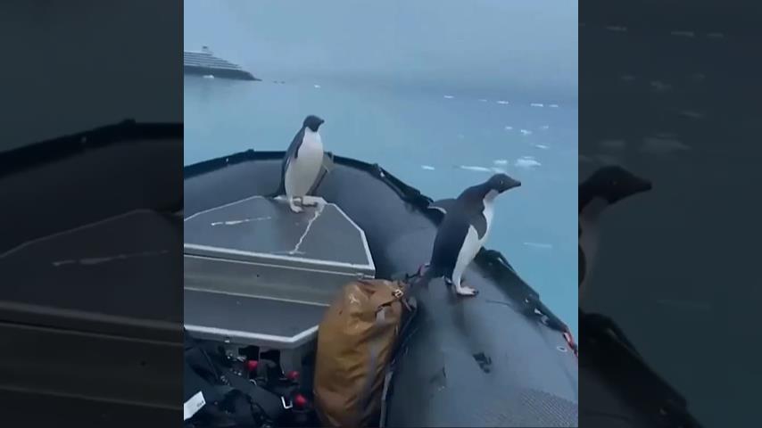 In Antarctica, a penguin jumps from a boat into the water. But the water was too cold and the penguin quickly returns back to the boat.
