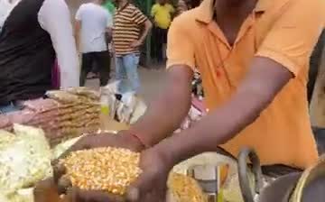 A street vendor prepares popcorn on the streets of Kolkata, India, with black salt, kala namak. He doesn’t need any machine for this. All he needs is a deep pan with red-hot salt, a large sieve, and the popcorn is ready in no time. The salt gives the popcorn a subtle sulfur flavor. When it’s ready, he scoops it into a bag, as usual, with just his bare hands, and seals the end by pressing it against the hot pan.