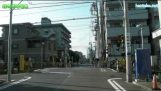A crane truck has lost its brakes and starts rolling backwards on a hill.