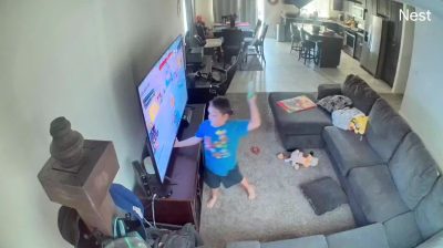Kid breaks TV with a controller