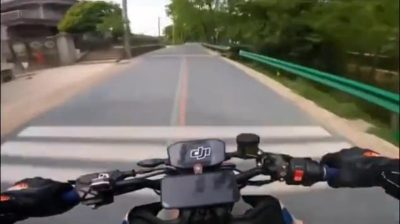 Motorcycle driver wanted to record himself in video, the moment he moves at high speed over a bridge.