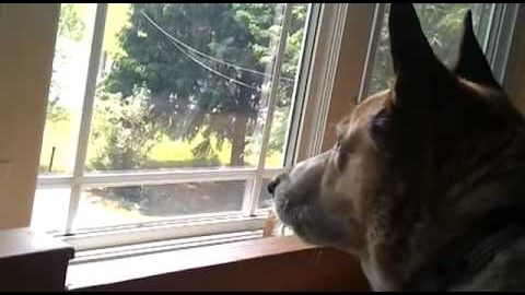 Seeing the baby of the family trying to climb on the balcony railings, a cat immediately pushes away the...