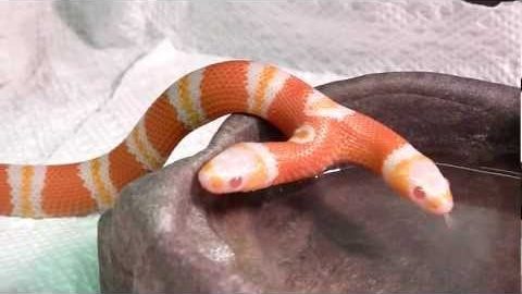 This particular snake belongs to the genre honduran milksnake He was born with two heads. You can see that the two heads of the control body, the moment I try to sync to drink water.