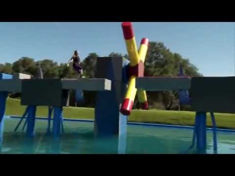 Scenes from the tv show Wipeout on USA and the episode 'Hotties vs Nerds»