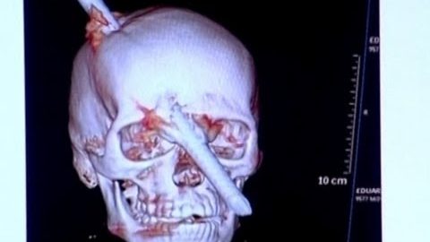 Incredible accident of 24-year-old Brazilian Eduardo Leite, that during his work in the construction of a building in Rio de Janeiro a metal bar fell from the 5th floor and pinned on his head. Was rushed to hospital where doctors normally spoke, After removing the rod in the operating room is perfectly healthy.