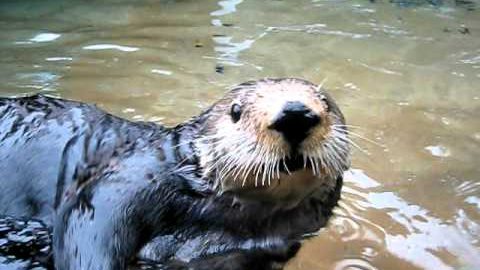 The Ryer Otter, He sleeps under a blanket at the Aquarium of the Bay of San Francisco, California. As soon as he hears...