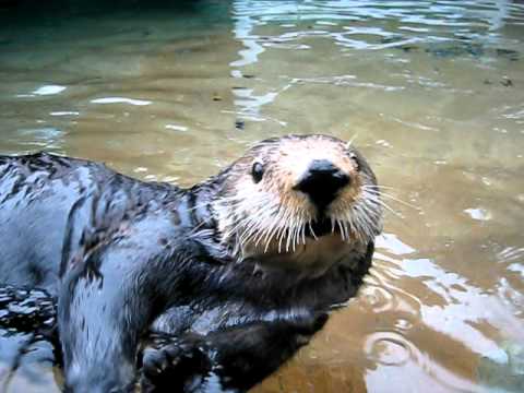 An otter protects its owner, when someone pretends to strikes. The best guardian.