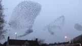 Near Kettering, England, a large number of starlings gather in a huge swarm that looks like a cloud. Within...