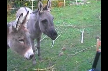 Donkeys looking at ass on video