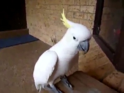 The Koci, an adorable Parrot kokatoya, speaks, sings and dances along with his boss.