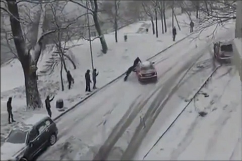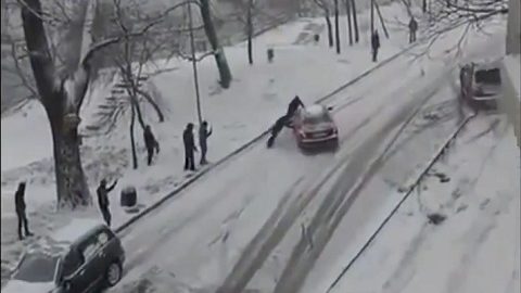 With the help of Clark Kent who arrives at the last moment.