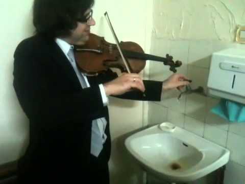 A violinist participates in concert together with the talented musicians and faucet pipes a washbasin in Poland.