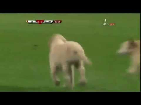 Both their playful dogs come into the stadium and interrupt the football match between Galatasaray and Turkey in Aalen