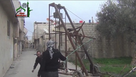 The FSA's rebels use a catapult(!) to launch the improvised bombs