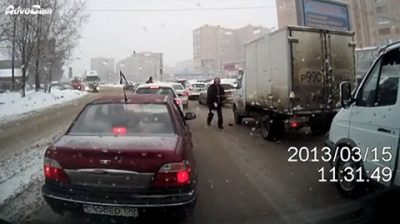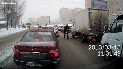 Two angry drivers in Russia exchange gifts with each other. What sweet.