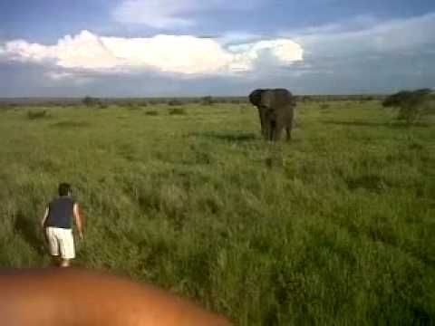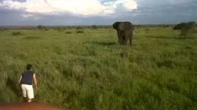 At Kruger National Park in South Africa, a drunk man katebainei by the car Safari and run against an elephant, something that is strictly forbidden. As it known, stupidity has no limits.