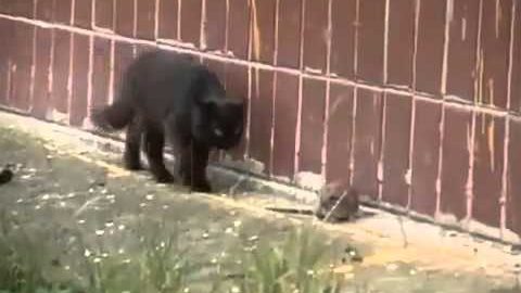 A huge rat attacks five cats!