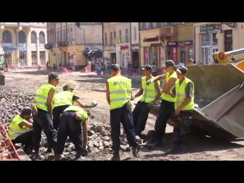 The job is very difficult, therefore these construction workers in Ukraine must work as a team…